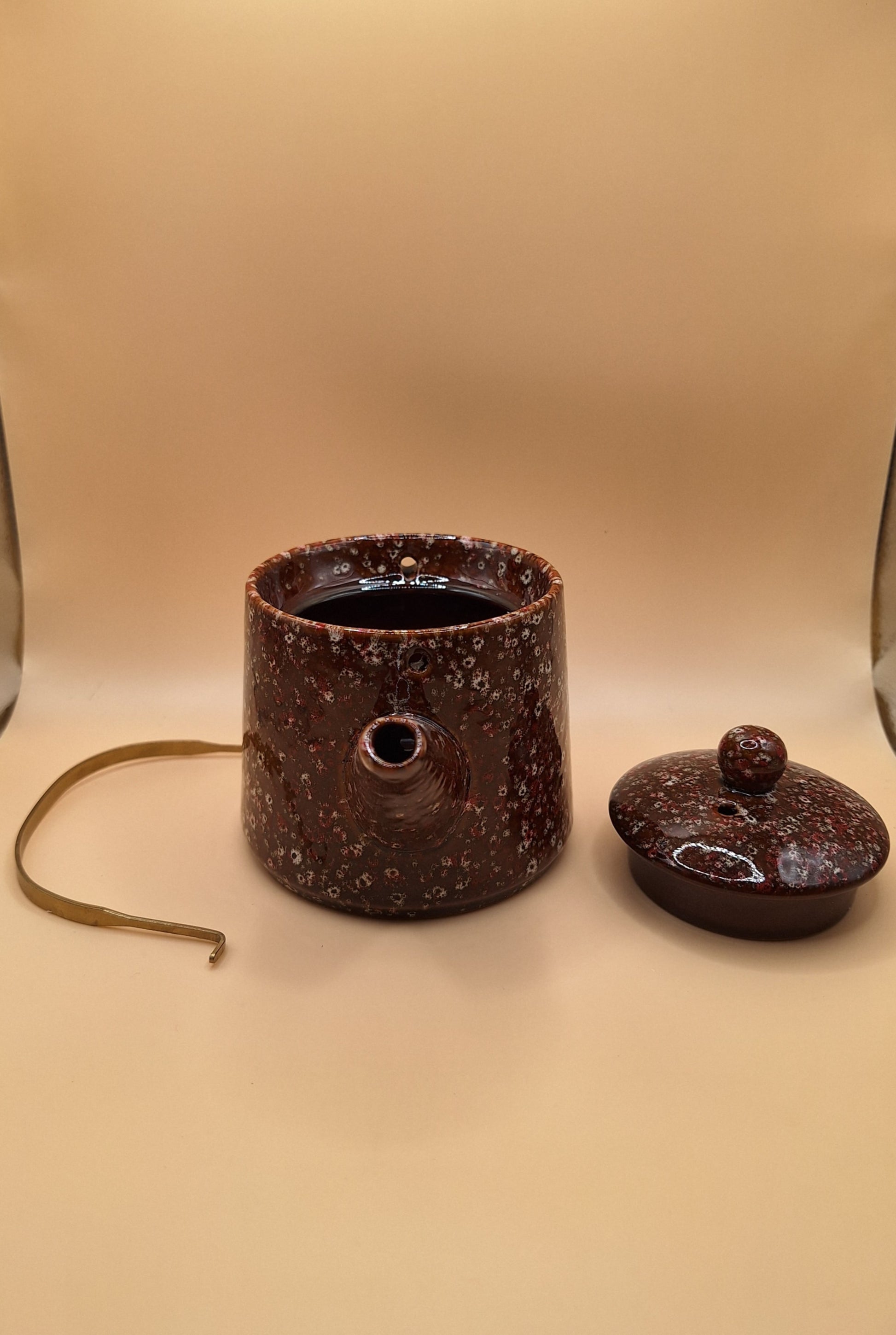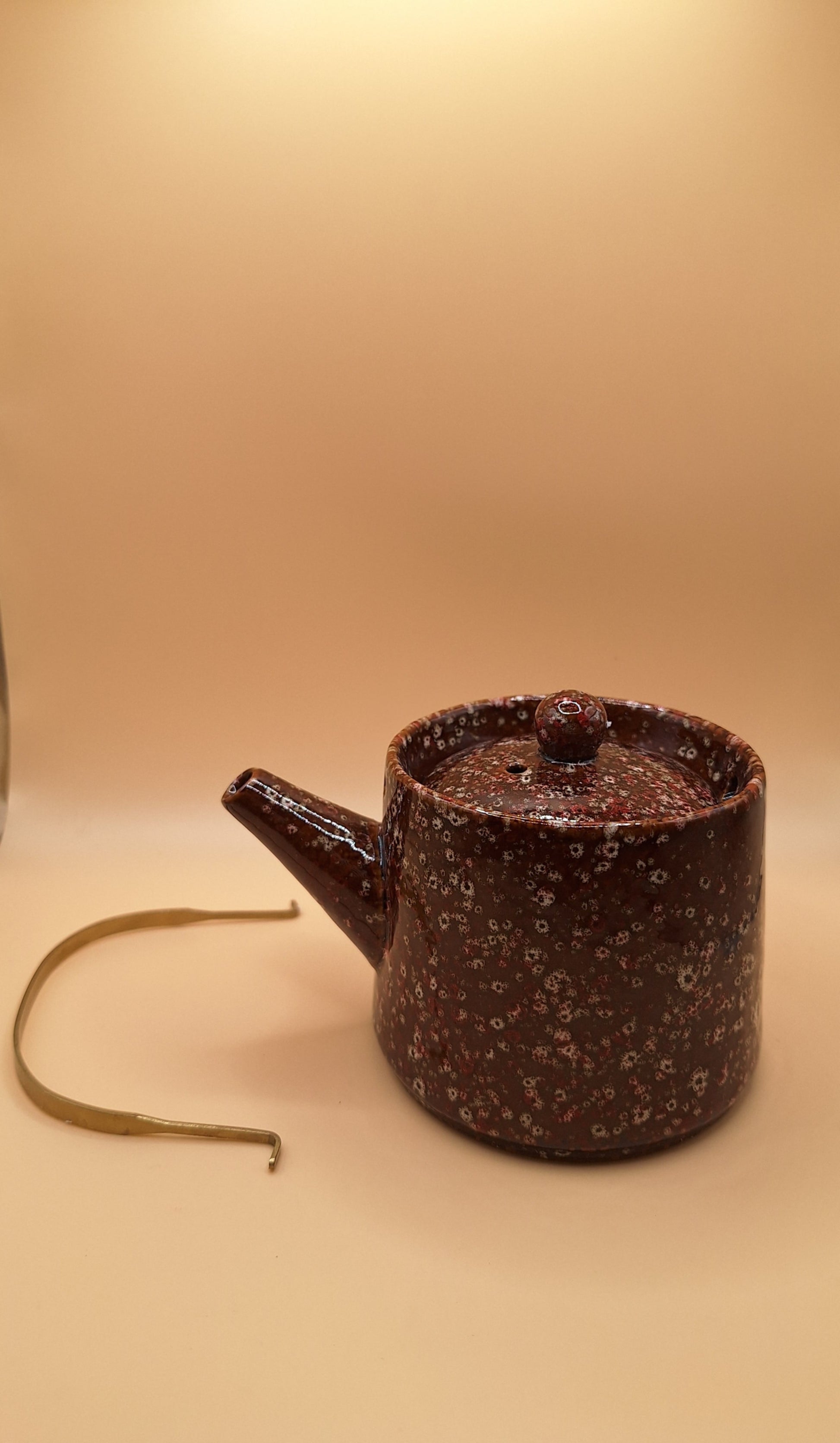 Une petite théiÚre élégante et chaleureuse, en céramique cuite au four, avec une finition marron mouchetée de rose qui lui donne un charme artisanal unique. Sa poignée dorée permet un service facile tout en évitant la chaleur, idéale pour un usage personnel ou comme joli cadeau.